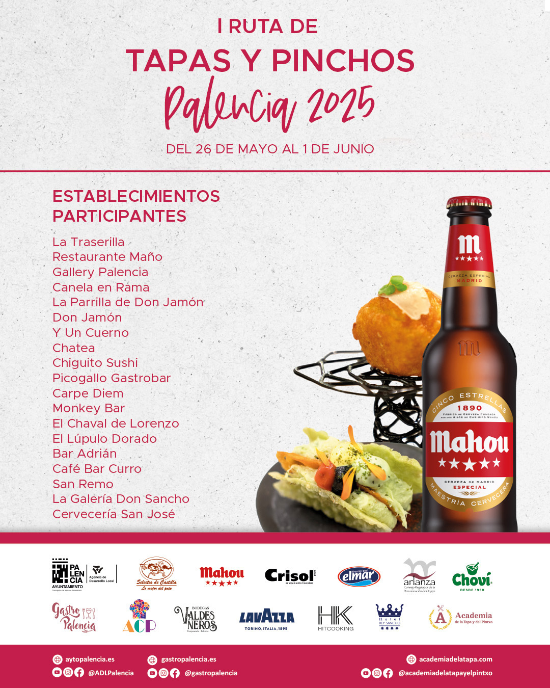 “Una de Bravas” cuenta con el respaldo del Ayuntamiento de Palencia, la Agencia de Desarrollo Local, la Diputación de Palencia y Alimentos de Palencia, junto a un sólido bloque de empresas patrocinadoras encabezado por Mahou San Miguel, Choví, D.O. Cigales y La Chinata. Otras firmas colaboradoras son Tudis, Heraclio Alfaro, TePack, Mercedes-Benz Adarsa, OceanGrain Audiovisual, Lebanza, Barra de Bar Consulting, entre muchas otras, sitúa a Palencia como capital nacional de una tapa tan conocida, reconocida y extendida como las Patatas BravasAgenda 2025