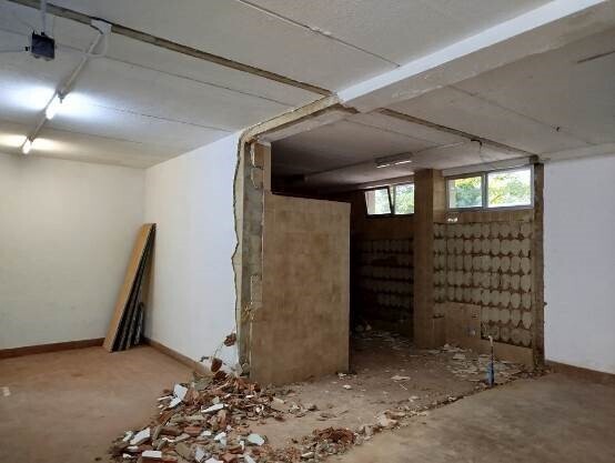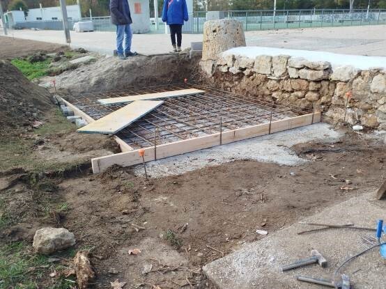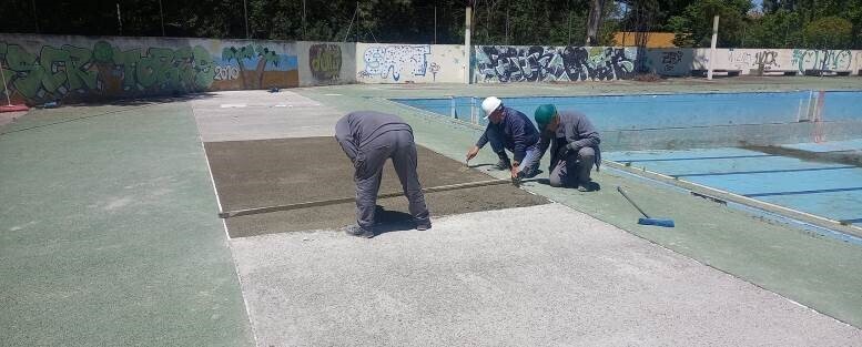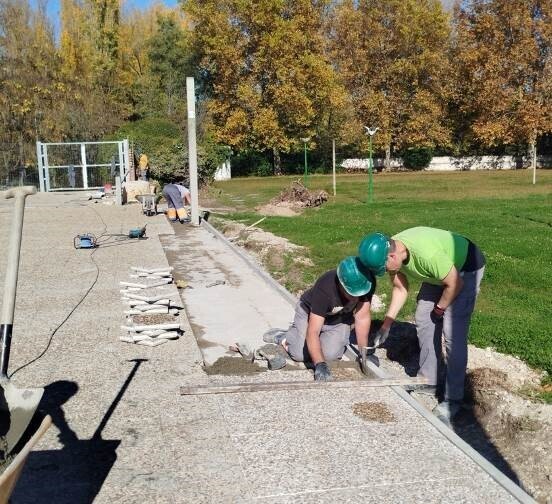 Las actuaciones que se vienen realizando en este primer proyecto se limitan a la accesibilidad y utilización de esas instalaciones y se adaptan al proceso formativo de los participantes, habiendo comenzado por la ejecución de muros y reparación de diversos pavimentos exteriores que presentaban roturas y deformaciones, tanto en el hormigón filtrante de la zona de baño como en diferentes tipos de solados, en el acondicionamiento de la zona de la depuradora y la ejecución de rampas de acceso a los vestuarios.