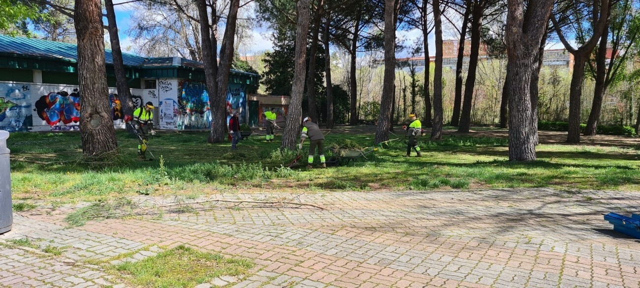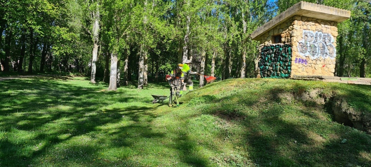 Dentro de las labores de mantenimiento se llevarán a cabo la siega, el desbroce y la poda de los jardines del parque y se realizará la instalación del riego de un parterre del jardín.