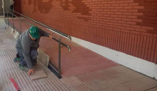 Una de ellas se centra en resolver la accesibilidad a la sala de botiquín, en la fachada lateral del edificio de vestuarios, mediante la realización de una rampa y la modificación de la rasante de la acera para permitir una salida de emergencia directa del recinto al parque.