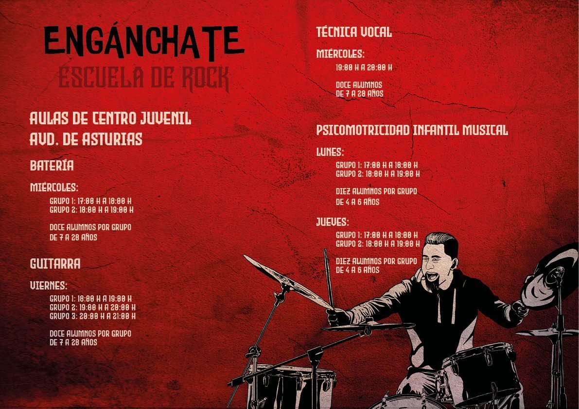 En las actividades de Batería y Guitarra, dependiendo del número y edad de los participantes, la Concejalía se reserva el derecho a formar los grupos e indicar a los admitidos el grupo y hora asignado.