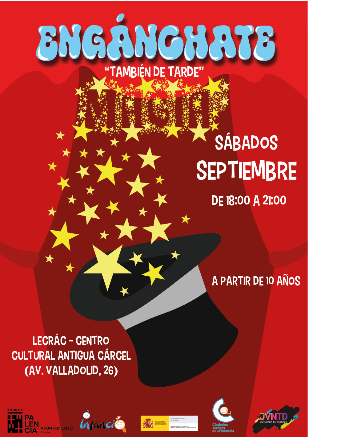 Se abre el plazo para la inscripción en las actividades del programa “Engánchate” del Ayuntamiento de Palencia, hasta 4 días antes de cada actividad. En caso de quedar plazas vacantes, se podrá participar hasta el comienzo de la actividad, rellenando la solicitud previamente, hasta completar las plazas. En las actividades de calle podrán apuntarse hasta el momento que empiecen la actividad, previa solicitud, in situ.