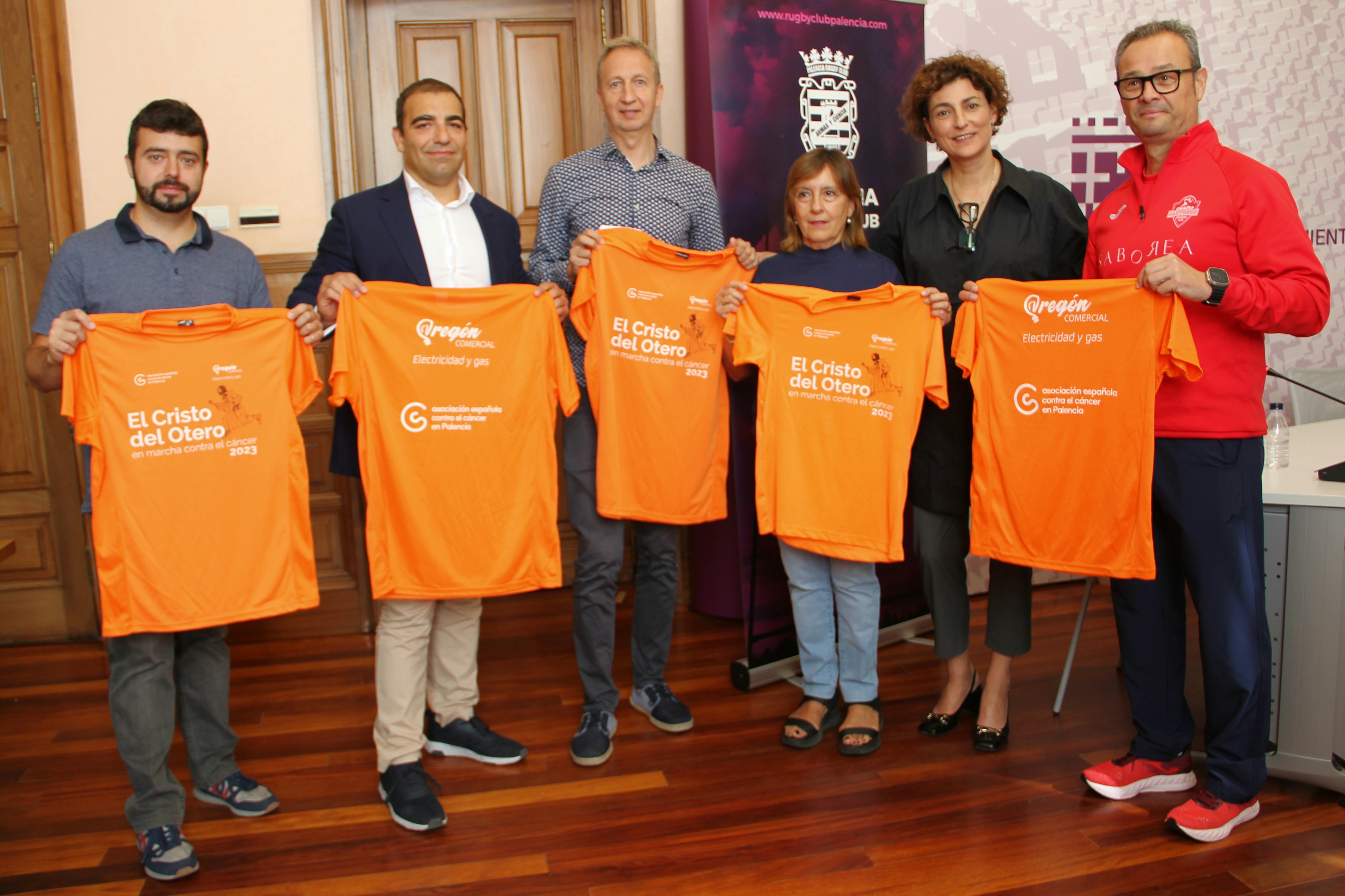 La sala de concejales del Ayuntamiento de Palencia ha sido esta mañana escenario de la presentación de la XI Carrera y Marcha contra el Cáncer, que, organizada por la Asociación Española Contra el Cáncer de Palencia en colaboración con el Ayuntamiento de Palencia y el Club de Atletismo Saborea Cuatro Cantones y como patrocinadores principales el Grupo Oregón y el Palencia Rugby Club, tendrá lugar el próximo 8 de octubre a partir de las 12:00 horas en el Paseo del Salón.