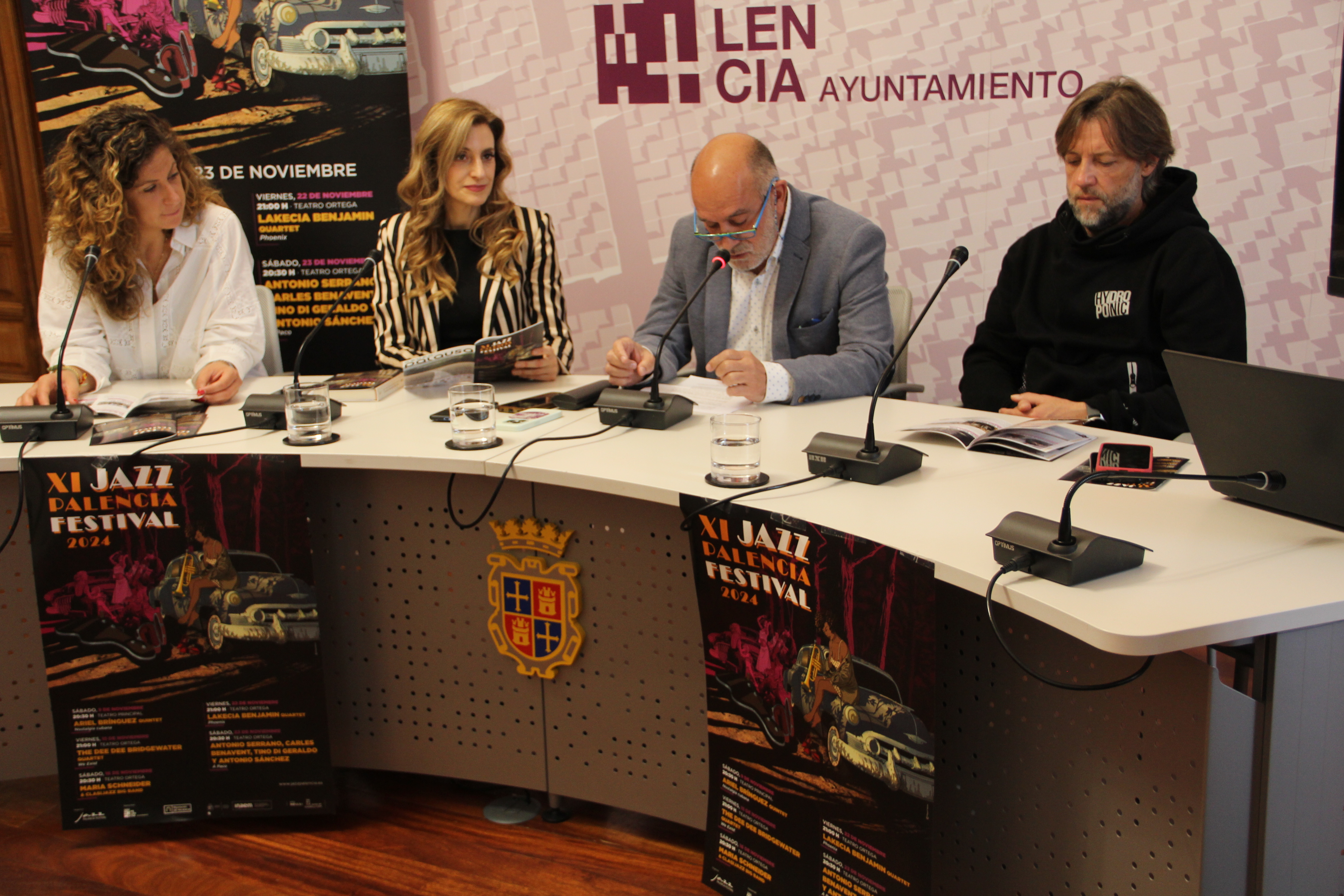 La Sala de Concejales del Ayuntamiento de Palencia ha acogido esta mañana la rueda de prensa de presentación de la undécima edición del Festival Internacional de Jazz de Palencia, un ciclo cultural que el próximo mes de noviembre reúne cinco grandes conciertos con músicos de talla internacional —un concierto inaugural en el Teatro Principal el sábado 9 y los cuatro que integran el abono en el Teatro Ortega los días 15, 16, 22 y 23—, que se complementa con una amplia y variada programación cultural, que incluye durante tres semanas un total de 24 actividades, muchas de ellas gratuitas: 17 conciertos en distintos espacios con 96 músicos y otras 7 propuestas culturales.