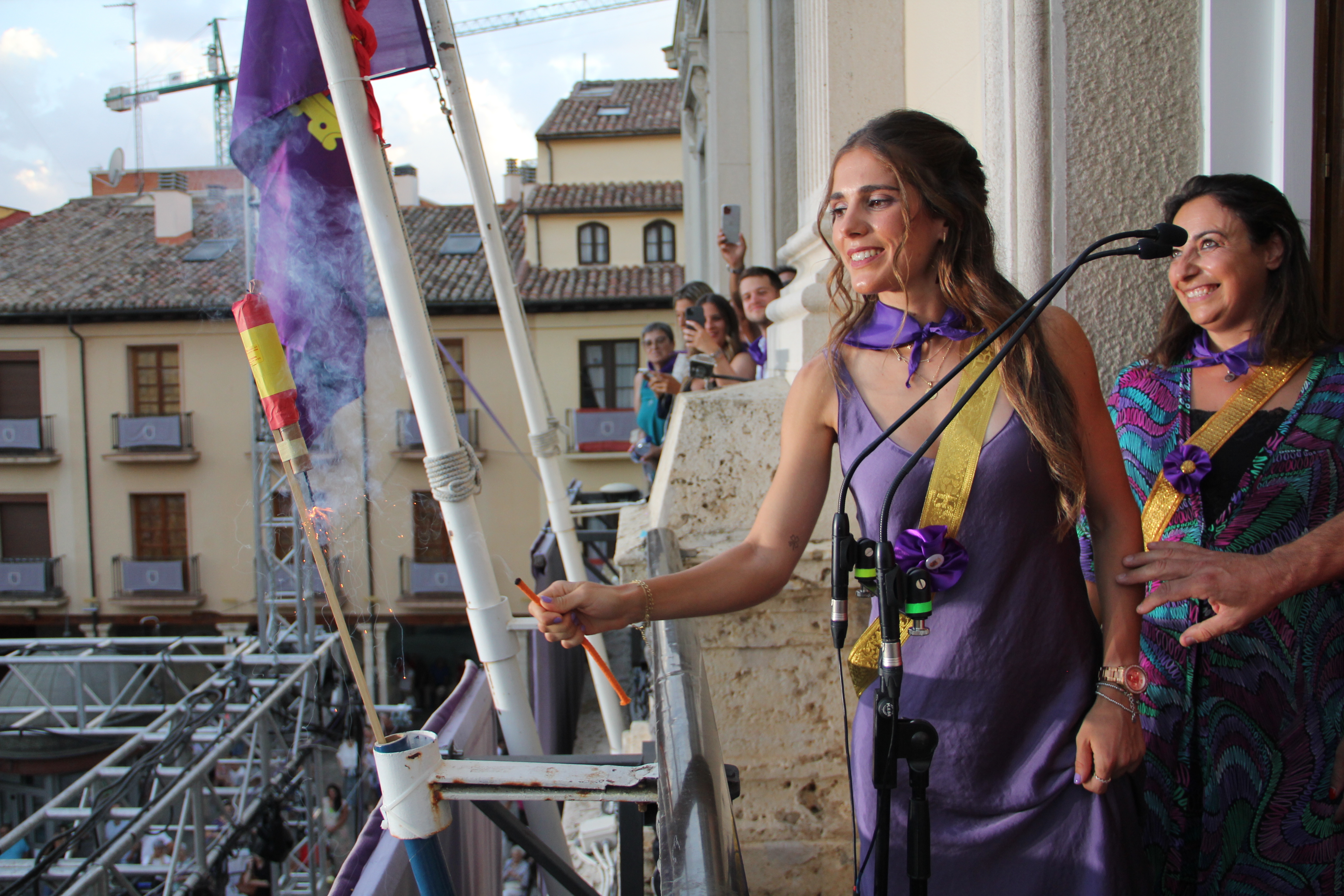 Asimismo, la alcaldesa de Palencia Miriam Andrés, ha intervenido desde el balcón del Ayuntamiento tras la pregonera para dar paso después al lanzamiento del "cohetón" que anuncia el comienzo oficial de las fiestas de San Antolín. Tras este, se ha celebrado el tradicional acto de homenaje e imposición de escarapelas a las 11 peñas palentinas que han subido al escenario de la Plaza Mayor para recoger sus insignias de la mano de las autoridades de la ciudad.