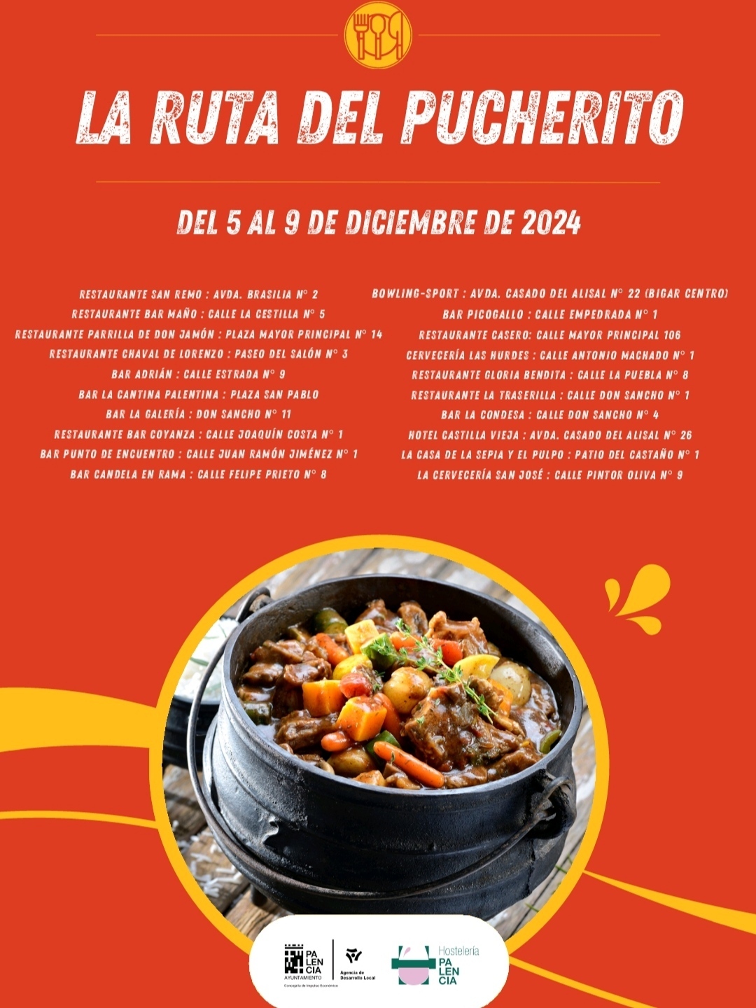 La Asociación de Hostelería de Palencia, con la colaboración del Ayuntamiento de Palencia a través de la Agencia de Desarrollo Local, organiza del 5 al 9 de diciembre la XXIII edición de La Ruta del Pucherito, una tradición que invita a disfrutar de los auténticos sabores de la cocina tradicional castellana.