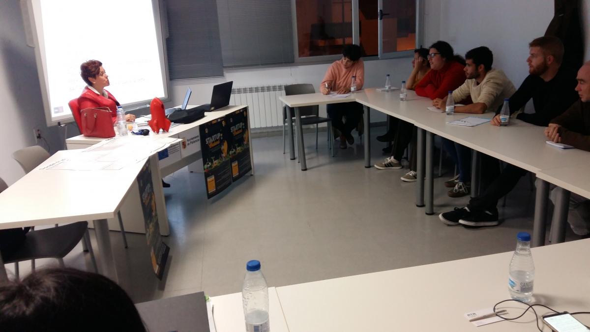 El día 26 de octubre de 2018 comenzó el Start Up Weekend en el centro Efides de Palencia. En la foto la ponente María Villahoz con los asistentes. |
