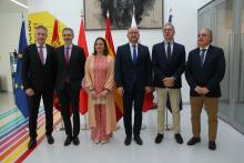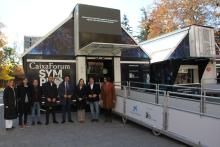 El concejal de Identidad Cultural, Turismo y Fiestas del Ayuntamiento de Palencia, Francisco Fernández; la responsable Territorial de la Fundación “la Caixa” en Castilla y León, Rosana Cano; el director de Área de Negocio de CaixaBank, Daniel Llorente; y el asesor de la exposición, Sergi Romeu, han presentado hoy en el Parque del Salón de Isabel II de Palencia la exposición Nikola Tesla.