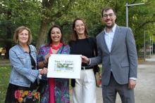 El Paseo del Salón, el parque más transitado y conocido de Palencia, será la imagen del cupón de la ONCE del próximo martes 10 de septiembre, perteneciente a la serie 'A pie de calle'. La alcaldesa, Miriam Andrés, acompañada por la directora de ONCE Palencia, Alejandra Rodríguez, ha presentado este cupón en un acto que ha tenido lugar en este mismo espacio, a la altura del Monumento a los Mayores, y en el que han estado acompañadas por el vicepresidente del Consejo Territorial de Castilla y León, Rodrigo Gonzalo y la concejala del área de Servicios Sociales, Charo García.